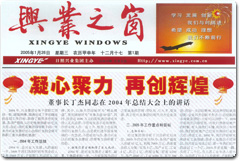 2005年1月26日,興業(yè)集團(tuán)內(nèi)部刊物《興業(yè)之窗》創(chuàng)刊,第一期出版發(fā)行。 |