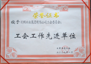 ·2009年,授予日照興業(yè)集團(tuán)有限公司工會委員會工會工作先進(jìn)單位