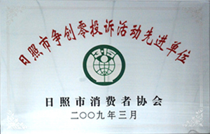·2009年,被評為日照市爭創(chuàng)零投訴活動先進(jìn)單位