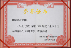 ·2008年,《興業(yè)之窗》被日照市新聞出版局評為日照市十佳優(yōu)秀內(nèi)部資料