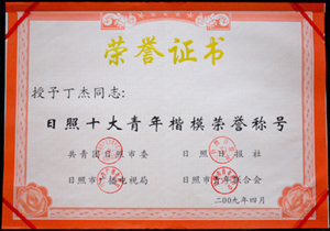 ·2009年,丁杰董事長獲得“日照十大青年楷模榮譽(yù)稱號”