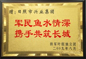 ·2009年8月,鐵軍獨立團(tuán)贈日照興業(yè)集團(tuán)有限公司:軍民魚水情、攜手共筑長城
