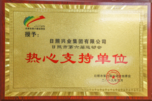 2019年9月,日照市第六屆運(yùn)動會組委會授予興業(yè)集團(tuán)“熱心支持單位”