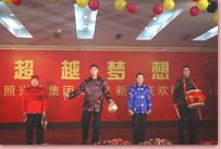 瑞犬凱歌辭舊歲,花豬起舞賀新年。2月6日晚,凱萊大酒店會展中心內(nèi)歌聲悠揚、掌聲陣陣,“2007年日照興業(yè)集團迎春聯(lián)歡文藝晚會”正在這里舉行。集團領導丁杰、王建國、韓金軍、趙文強、申作華、李麗萱、李春賢以及集團機關、各分公司的標兵、先進工作者、職工代表近400人一起興致勃勃地觀看了演出。全國政協(xié)委員、民革中央畫院院長、國畫大師宋雨桂應邀出席了晚會。市內(nèi)各大銀行、日照日報、日照電視臺等單位的領導、記者、工作人員也觀看演出,歡聚一堂,共慶新年。